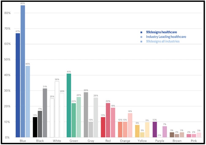 Companies have ideally resisted from colours like brown, grey, and orange as generally, people associate a certain level of dirt and uncleanliness to them. The following graph provides a clear indication of the colours that healthcare companies use.