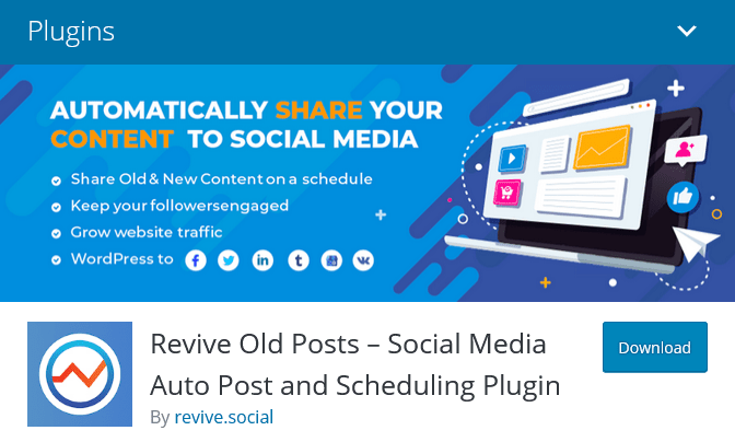 Revive Old Posts social media plugin helps you to automatically update your social media account by uploading social media posts.