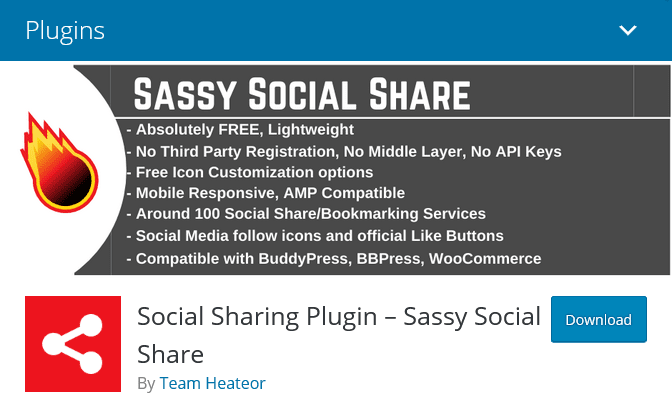 Sassy Social Share is known for its charming and delightful integration of social media channels into WordPress web pages. It offers tons of options to design social media icons in the way you want to display them on your website.