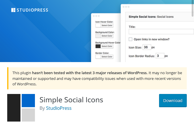 Simple Social Icons is a popular tool to add social media icons to the website. It provides small and enticing social icons for more than 14 social media channels with clickable icons that take your website visitor to your social media account.